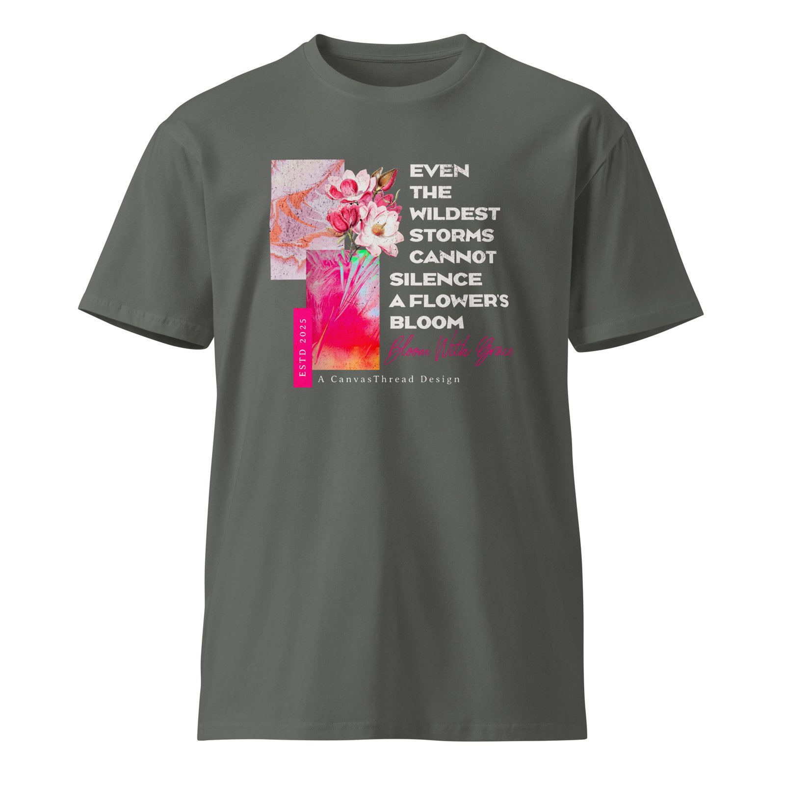 Bold, poetic, and made for everyday wear 🌸. This women’s premium dark tee features the inspiring line “Even the wildest storms cannot silence a flower’s bloom.” Perfect for those who rise above challenges with strength and elegance. Crafted from soft, high-quality cotton, this tee is both comfortable and empowering.